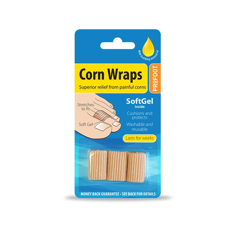 Profoot Corn Wraps are used by chiropodists worldwide and are designed to offer superior relief from painful corns. The elasticated fabric sleeve incorporates a layer of Profoot Soft Gel which has the following benefits; Profoot Soft Gel External friction and pressure are the cause of many foot problems. Profoot Soft Gel has all the properties needed to relieve or reduce these causes. It has the following benefits; Friction Reduction - The gel's opposing surfaces move separately from each other, friction is dramatically reduced Pressure Relief - The gel redistributes downward pressure sideways, providing excellent pressure relief Moisturising - The gel contains a pure medical grade mineral oil - helping to keep the skin soft and supple, reducing hard callused skin and helping to prevent calluses forming. Profoot is a leading footcare brand specialising in providing innovative solutions for a wide range of footcare problems. Profoot helping you step through life comfortably.