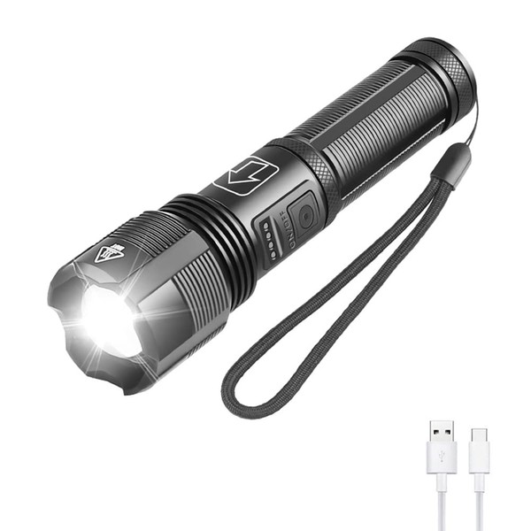 PROFORUS Tactical Flashlight - USB Rechargeable, 6000 Lumen XHP70.2 LED, 5 Modes, Zoomable, Power Indicator, USB Output