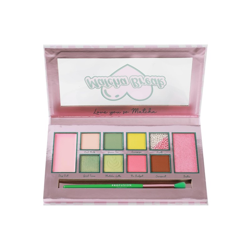 Profusion Cosmetics Matcha Break 10 Shade Eye and Face Palette with Brush, Multi Finish Palette to Achieve Eye Catching Bold Looks