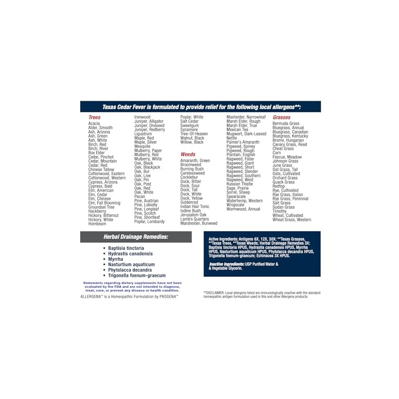 PROGENA PROGENA- Allergena Texas Cedar Fever (1 FL Ounce)