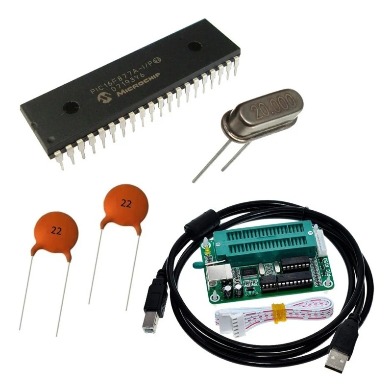 🎁 Kit Completo: Incluye un microcontrolador PIC16F877A, condensadores y un cristal, dándote todo lo necesario para empezar a trabajar de inmediato.