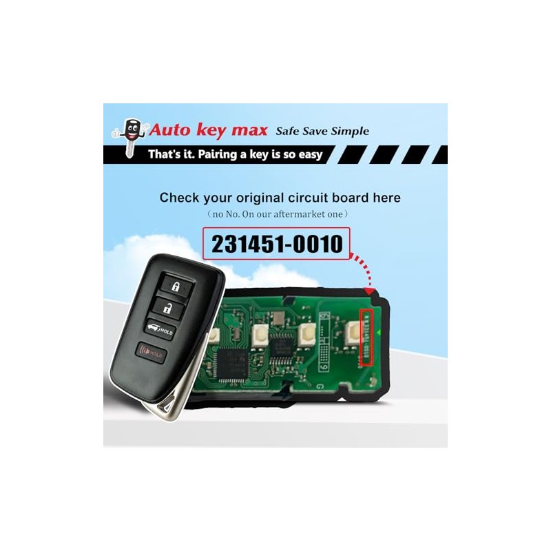 Programmable Keyfob, Replacement Car Keys Fob and DIY Programmer Kit for 2016-2020 Lexus RX350 RX450h Smart Remote HYQ14FBB 231451-0010 (Remote Only)