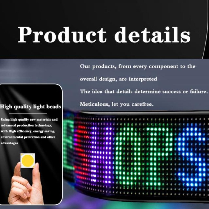 - DIY Function: Scrolling LED sign can DIY customizable design patterns and text. Whether you're promoting a business, expressing personal messages, or adding flair to your vehicle, LED display offers endless possibilities for expression and communicating.