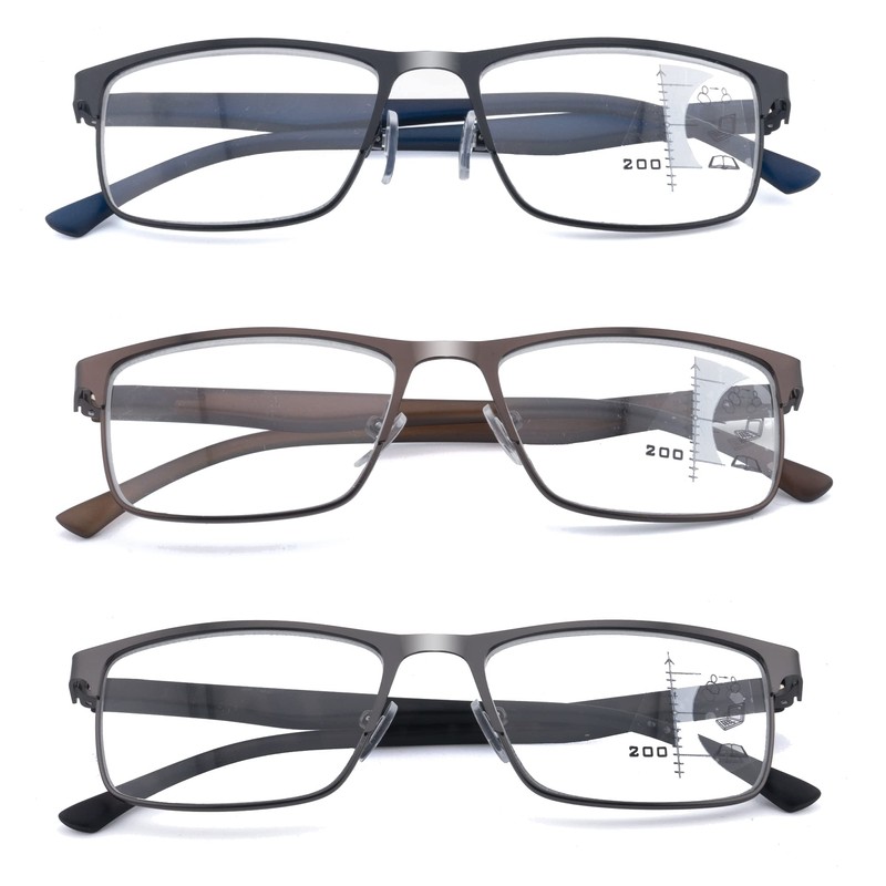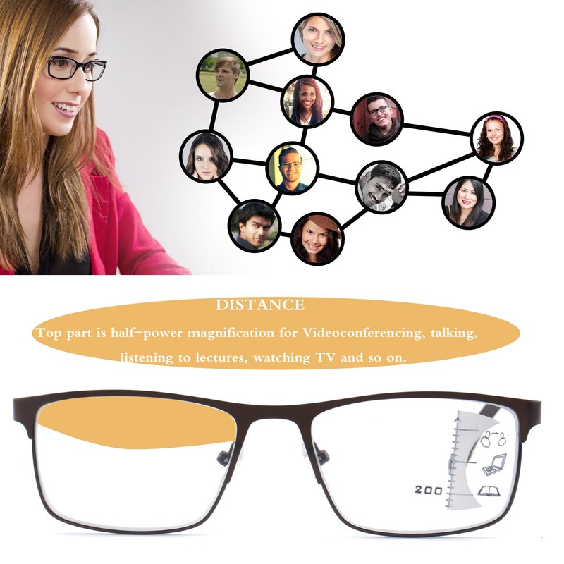 - Progressive multifocus:The glasses for all your need. The bottom part of the lens is full-power magnification, then used for nearly distance reading. The middle part is slightly reduced power magnification for working on computer,using the phone, etc.Top part is half-power magnification for watching TV And Conversations,Meetings.