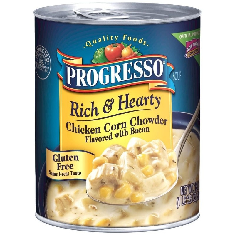 - Progresso Rich & Hearty Chicken Corn Chowder Soup (Flavored with Bacon)18.5oz