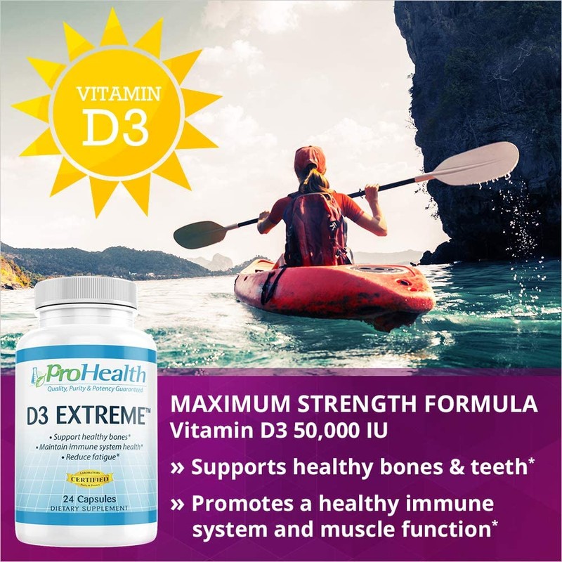 ProHealth Vitamin D3 Extreme (50,000 IU, 24 Capsules) Helps Boost and Support Healthy Bones and The Immune System | Gluten Free | Soy Free