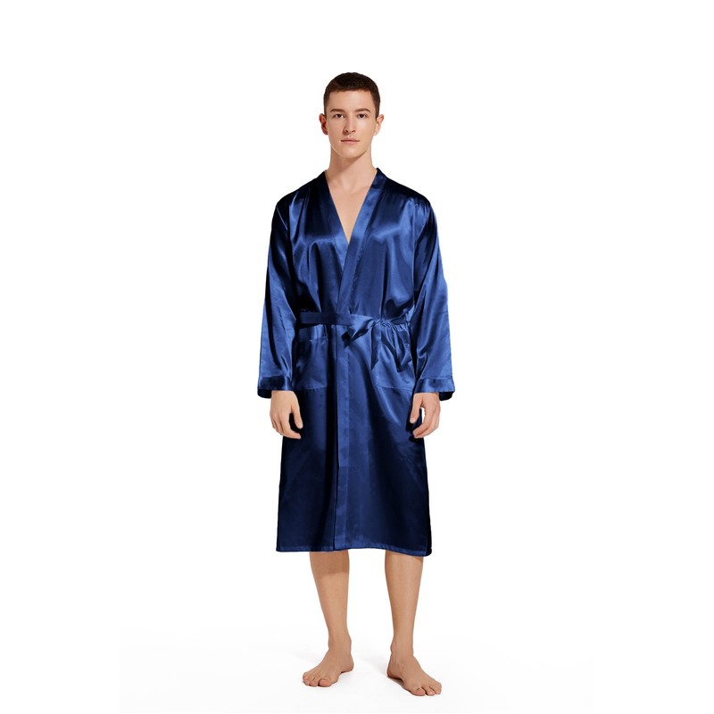 Prohonbec Men's Satin Kimono Robe with 2 Pockets, Men's Bathrobes for Wedding Spa Robe Sleepwear Party Nightgown Dailywear
