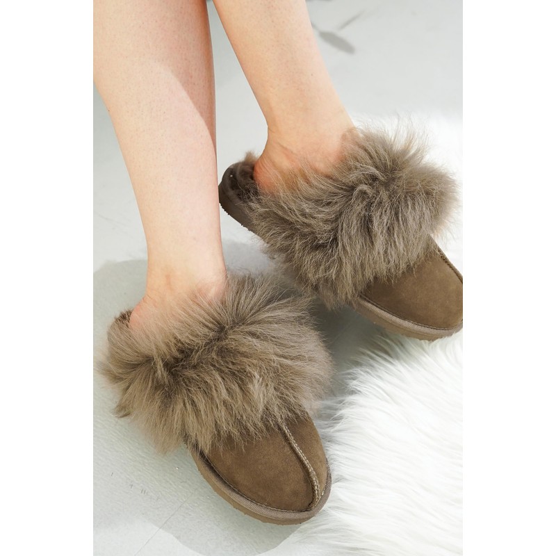 • 𝗚𝗲𝗻𝘂𝗶𝗻𝗲 𝗦𝗵𝗲𝗲𝗽 𝗙𝘂𝗿 𝗟𝗶𝗻𝗶𝗻𝗴: Lined with plush, genuine sheep fur, these fuzzy slippers offer an indulgent, fuzzy texture that envelops your feet in cozy warmth. The soft, thick fur adds a luxurious touch while keeping your feet snug. These christmas slippers for women make a perfect gift for her.