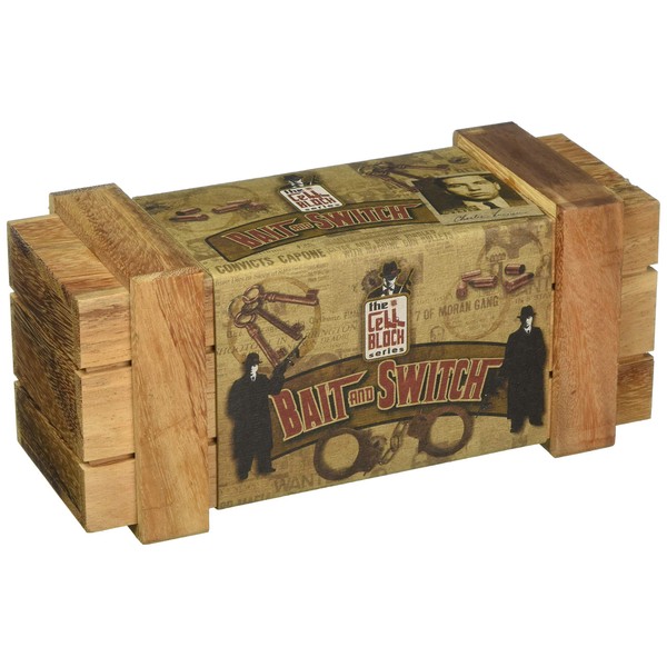 The Cell block series: bait and switch - it's three puzzles within a puzzle. Challenge #1: find your way inside the puzzle box. Challenge #2: disassemble and then solve the puzzles inside. >The Cell block series puzzles focuses on the fun found in playful Trickery and deception. Inspired by a vintage mobster theme, the Cell block series will be a mtach for puzzles who enjoy locks and secret compartments.