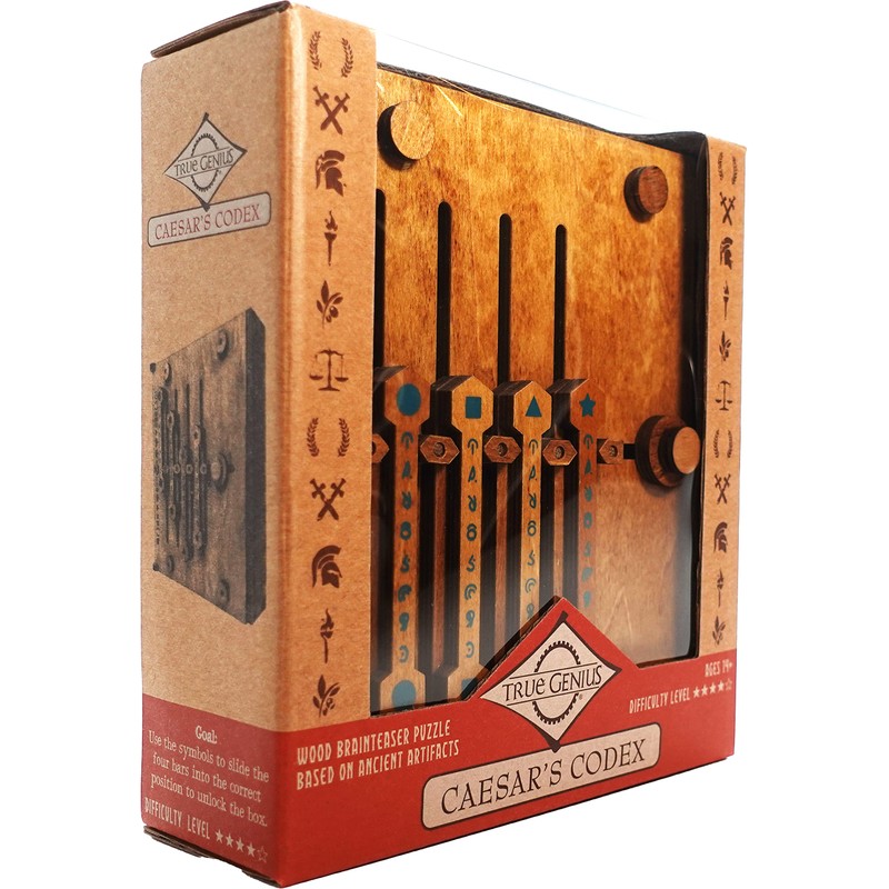 Project Genius: True Genius - Caesar's Codex, Wood Brainteaser Puzzle, Based on Ancient Artifacts, Play and Then Display, for Ages 14 and up
