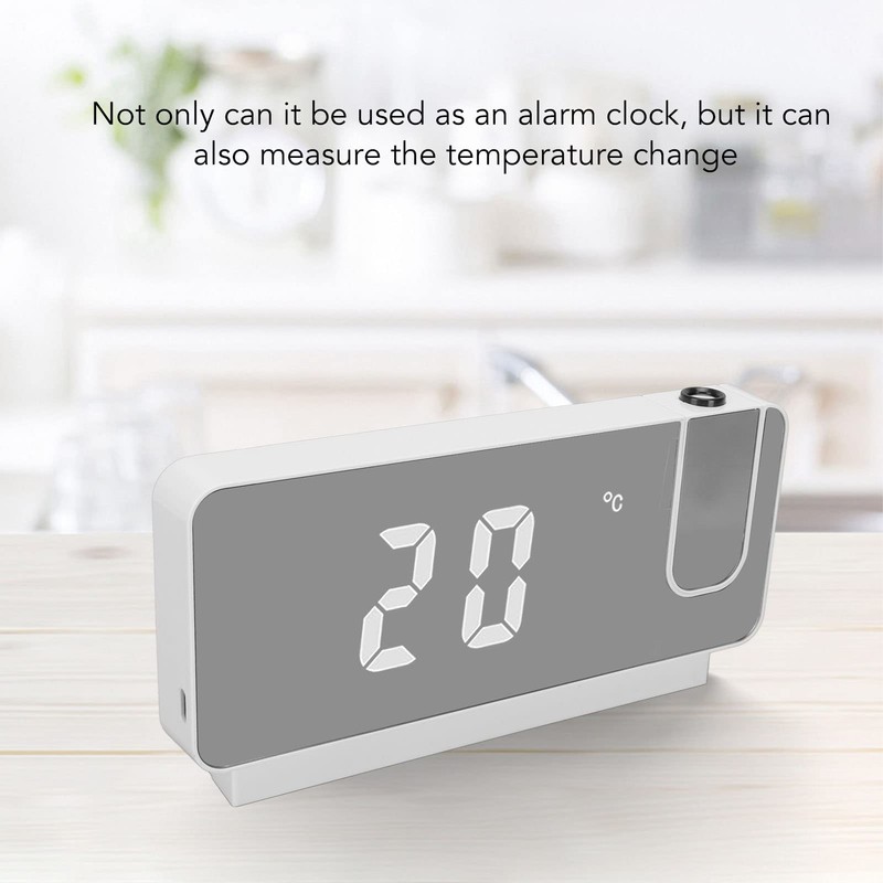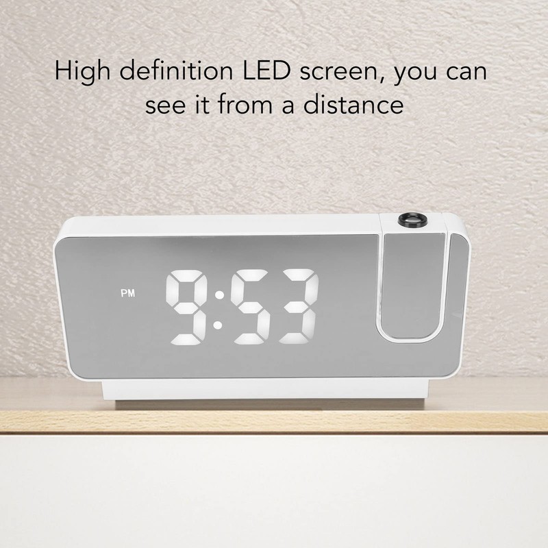- 【PROJECTION ALARM CLOCK】This digital projection clock offers ultra-clear views of the time on your ceiling/wall with upgraded adjustable 180° projector. The projection alarm clock can project from multiple angles, and the 180 degree flexible swing arm can adjust the projection angle at will. Easy to grasp the time while in your bed without touching anything.
