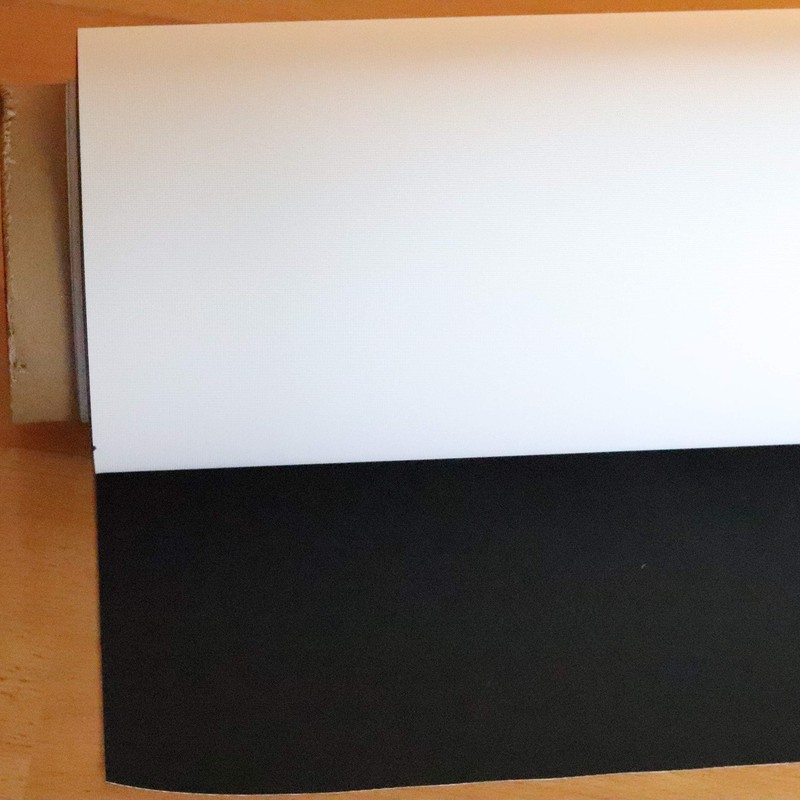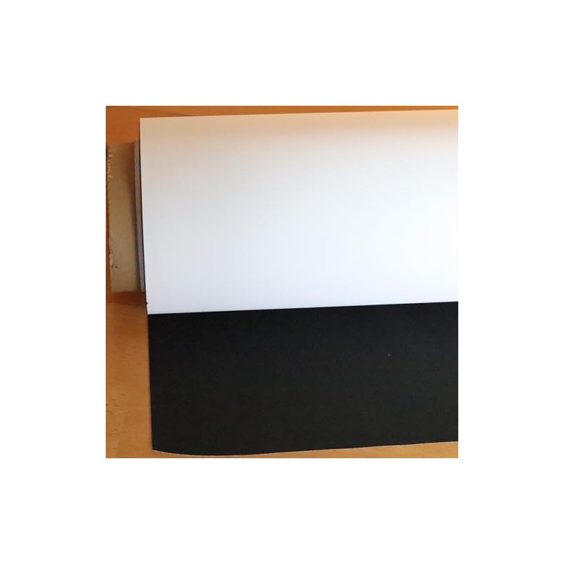 The projector screen makes your home a home theater. High resolution content is displayed in excellent picture quality on the 16:9 format projection surface. The black back increases contrast and relieves the viewing eye. As the screen cloth is compatible with LED, LCD and DLP projectors, it is suitable for movies and games as well as for professional presentations. Features at a glance: colour: white, back black rubberised, weight: 350 g/m². HD gain factor 1, opaque, coating completely glare-free, made in Germany. This is only the canvas fabric. The canvas will be sent folded.