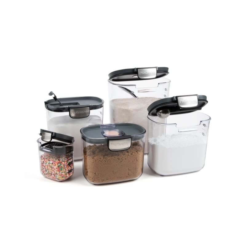 - Set includes 1 flour, 1 sugar, 1 brown sugar, 1 powdered sugar, and 1 mini keeper