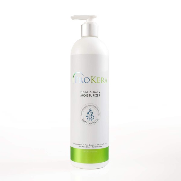 ProKera Hand & Body Moisturizer - Body and Hand Lotion for Dry Skin - Fragrance-Free, Non-Greasy with 3% Glycolic Acid - 8 oz