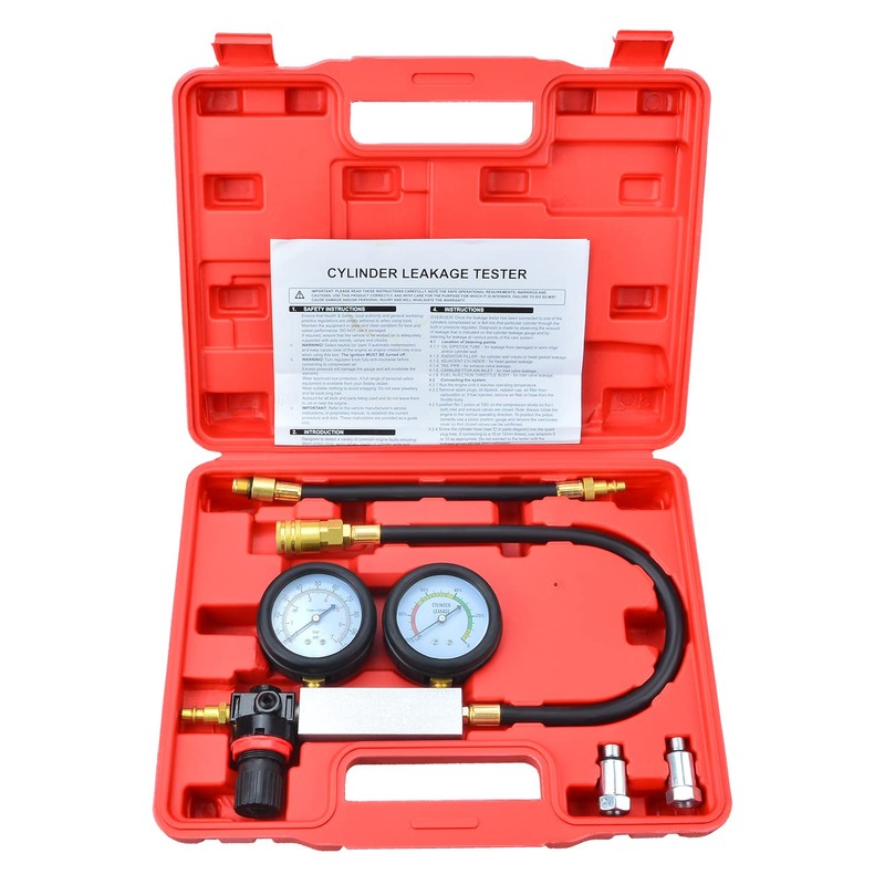 • ◇ Cylinder Leak Down Tester : The set is designed to detect a variety of common engine faults (Including: worn piston rings, worn valves, cracks in cylinder walls and blown head gaskets). Suits all local and imported cars and trucks, ideal for testing trucks and car models where clearance is minimal. check the amount of leakage in 4-stroke engines