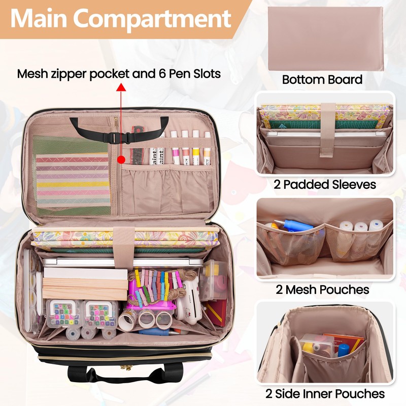 - KEEP SHAPE AT ALL TIMES: This rolling craft bag has 2 built-in boards and 1 removable bottom board, to support the structure and prevent collapsing when filled with craft materials. Three layers of nylon fabric and foam padding protect your art supplies from all dimensions.