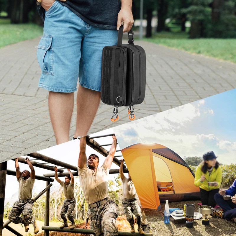 - EASY CARRYING: The adjustable strap with a buckle contributes to quick release and makes it convenient to hang the IFAK pouch from anywhere. The MOLLE system allows for additional essential items. Users can hang commonly used small tools on the 5 straps and 1 D-ring on the bag.