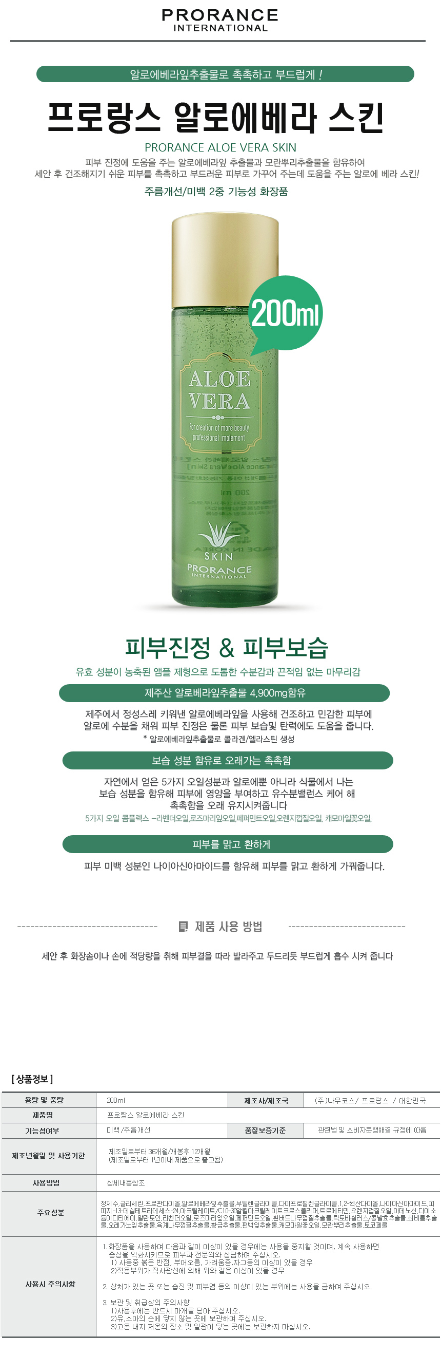 Prolance Aloe Vera Skin 200ml / 프로랑스 알로에베라 스킨 200ml