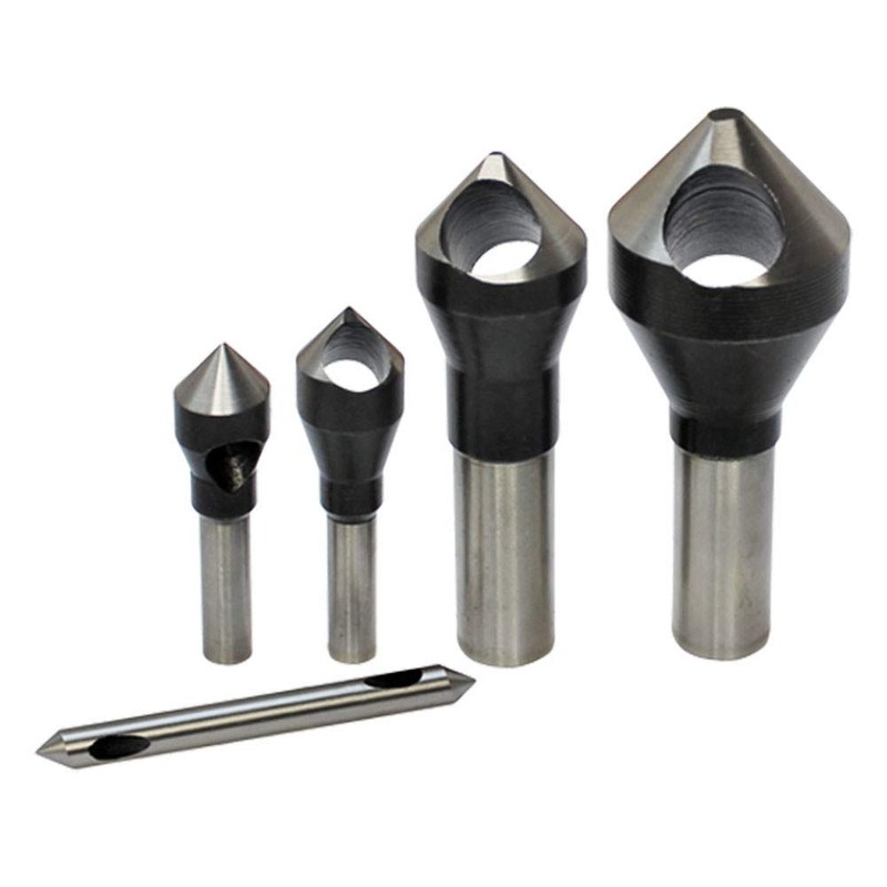 - 5 PC Countersinks & Deburring Tool Set Straight Shank 1/16-9/16 HSS 82 Degree