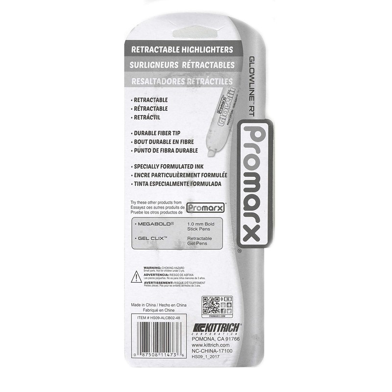 The promarx retractable highlighter is a durable high quality stick highlighter. Whether you are in class, at work or getting together for book Club, The promarx highlighter will have you marking all of the important information Quickly, making it easy to reference later. The retractable design allows for easy one-handed use and you will never have to worry about where you placed The cap. Promarx highlighters have a durable fiber tip to allow for precise highlighting of an area or underlining a thought. Each promarx highlighter is equipped with non-toxic ink and is fade proof so the important ideas always stand out. Make your mark, with promarx!