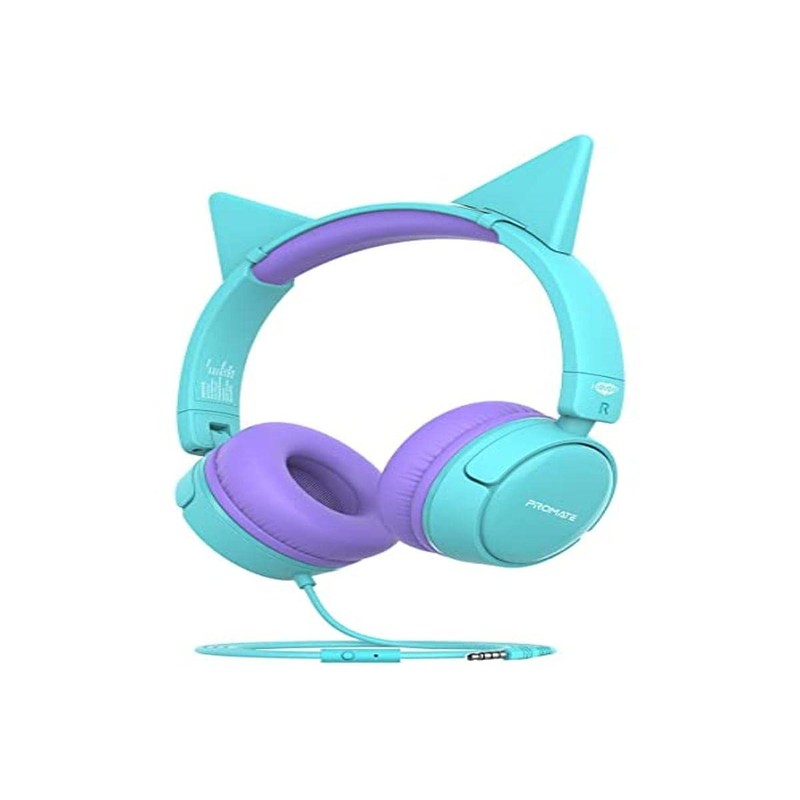 Promate Jewel Wired HD Stereo On-Ear Headset with Safe Volume Limit from 85dB to 95dB, Detachable Cat Ears, AUX Share Port, Foldable Headband and Built-in Microphone