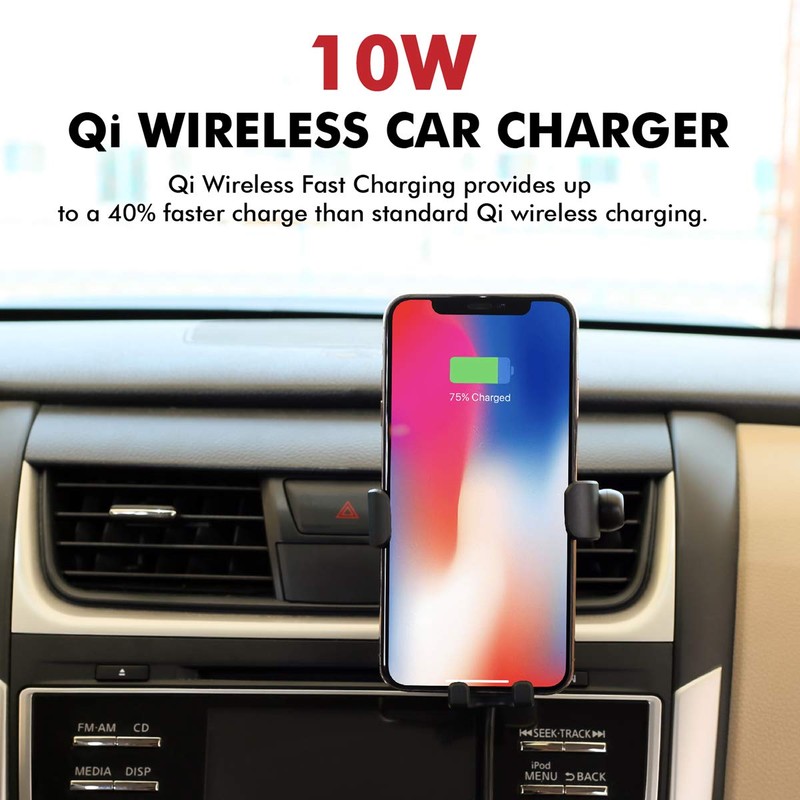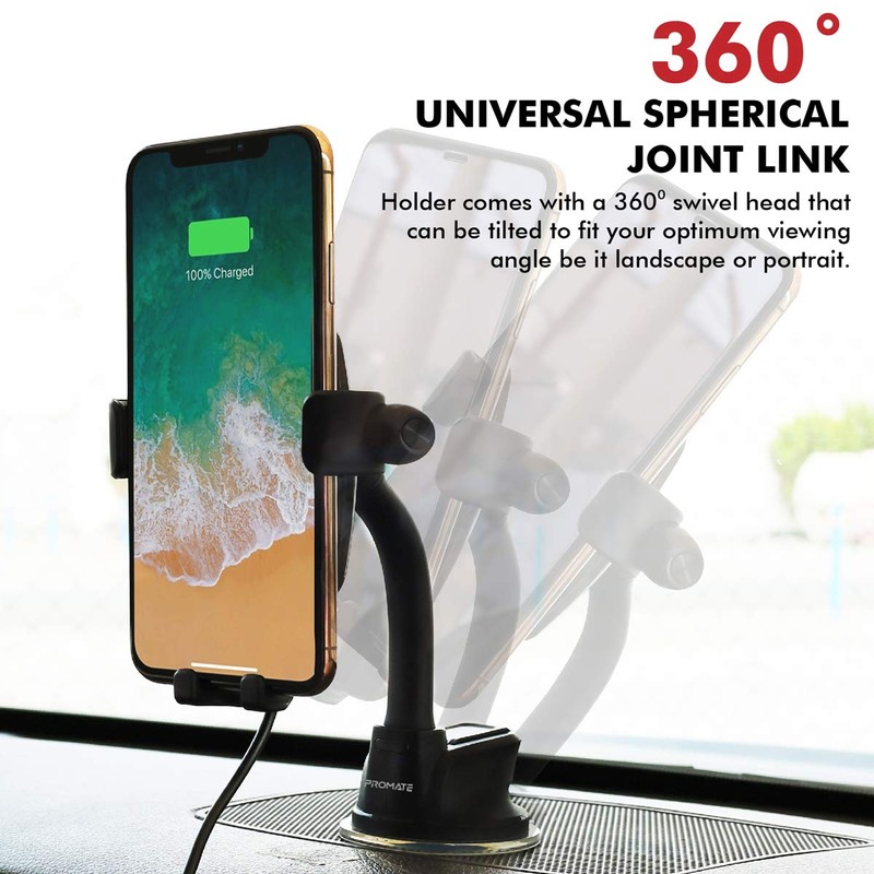 Promate Wireless Car Charger Mount, Qi Certified Air Vent and Gooseneck Suction Mount for Wireless Chargers with Mono Bluetooth Headset, Microphone
