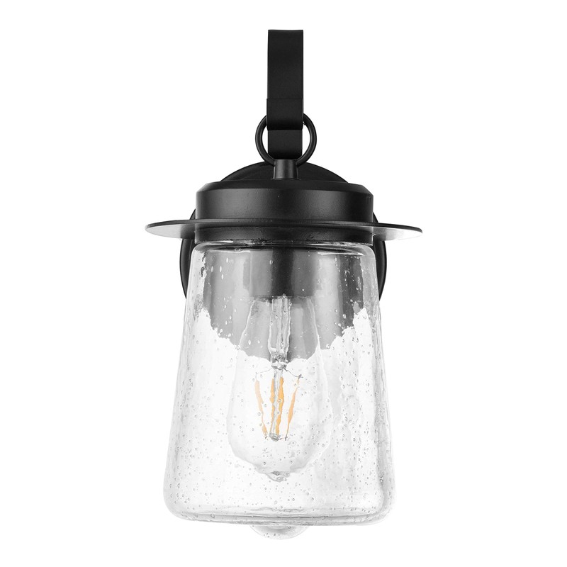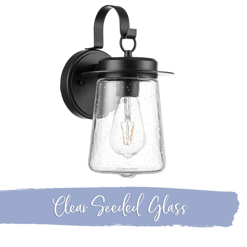 Create a warm and welcoming glow on your front porch or back patio with this outdoor wall sconce. This wet-rated coach light features lantern inspired details and clear seeded glass creating beautiful farmhouse charm and eye-catching illumination.