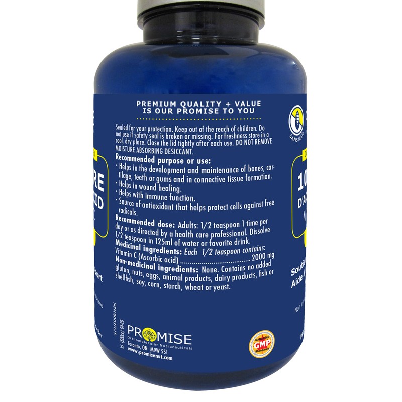 Promise 100% Pure Ascorbic Acid Vitamin C Powder, 2000 mg of Vitamin C per Serving – Unflavored, Non-GMO, Gluten-Free – 450 grams