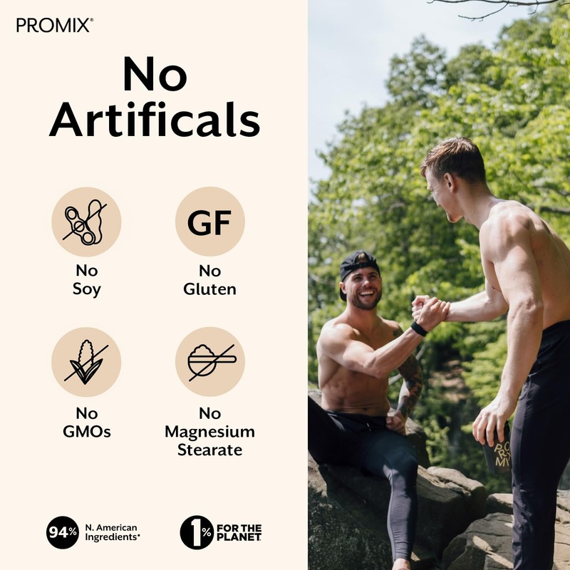 - No Artificial Anything: Promix is a science-based nutrition company making products to the standards specified by professional athletes for performance, ingredient quality, and safety. We deliver seriously clean supplements and snacks to people who want to feel and perform their best.
