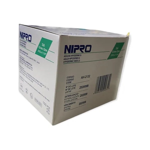 Promo Aguja HiPodérmica Nipro 21gx32mm (1 1/4 ) Verde 100u