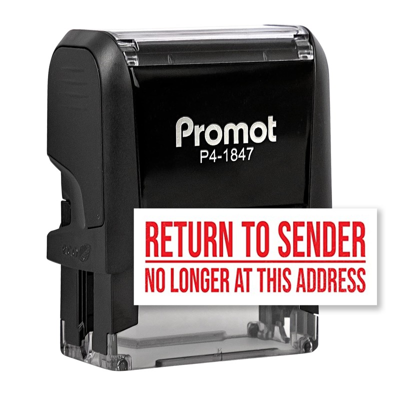 Promot RETURN TO SENDER NO LONGER AT THIS ADDRESS Self Inking Rubber Stamp