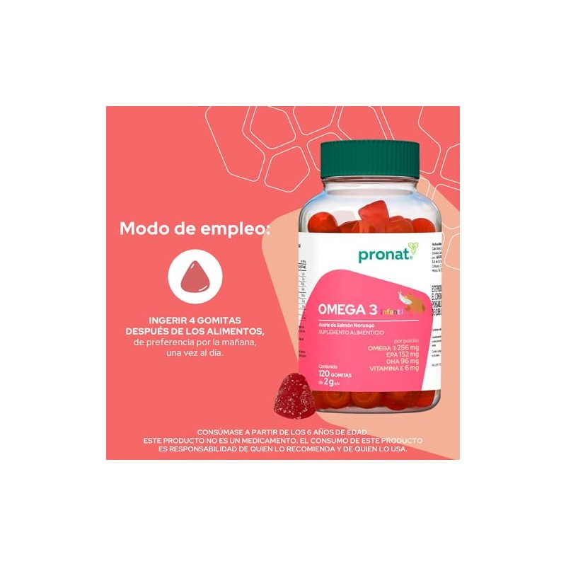 🌟 ⭐ PRONAT | Omega 3 Infantil, Suplemento Alimenticio, 120 Gomitas con 256 mg de Omega 3, 152 mg de EPA, 96 mg de DHA y Vitamina E ⭐ 🌟