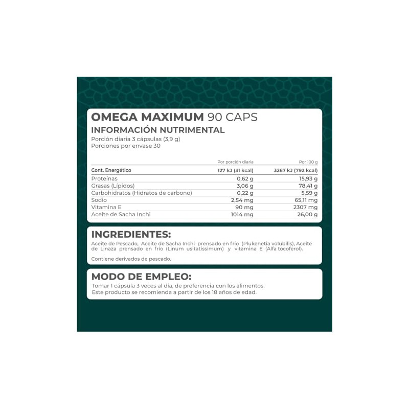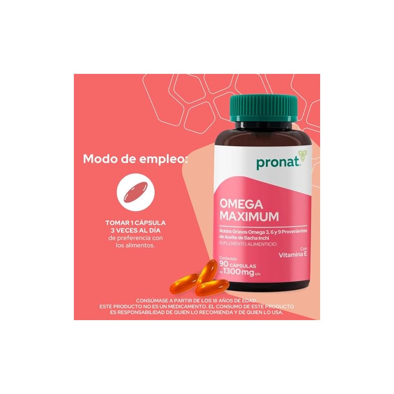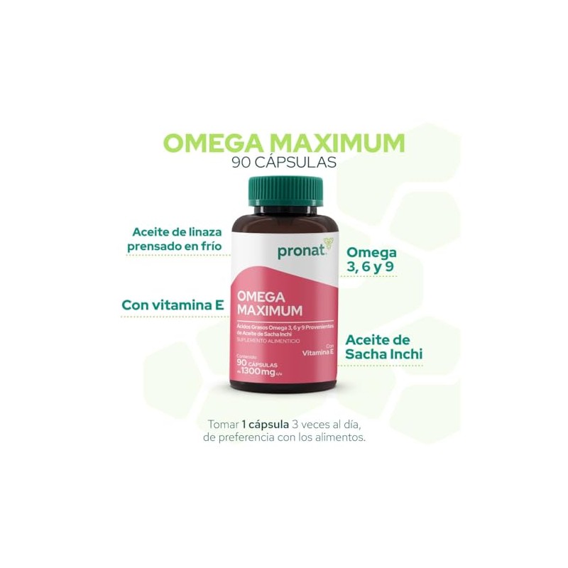 🌟 ⭐ PRONAT | Omega Maximum, Suplemento Alimenticio, 90 Cápsulas con Omega 3, 6 y 9, 1014 mg de Aceite Sacha Inchi, Pescado, Linaza y Vitamina E ⭐ 🌟