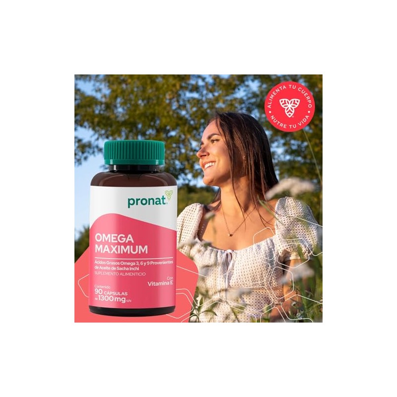 PRONAT Omega Maximum, Suplemento Alimenticio, 90 Cpsulas con Omega 3, 6 y 9, 1014 mg de Aceite Sacha Inchi, Pescado, Linaza y Vitamina E