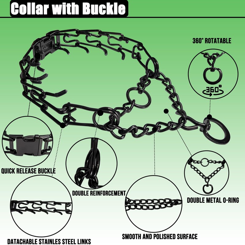 Prong Training Collar for Dogs, Adjustable Dog Pinch Collar with Quick Release Buckle, No Pull Collar for Small Medium Large Dogs, Extra Link and Caps