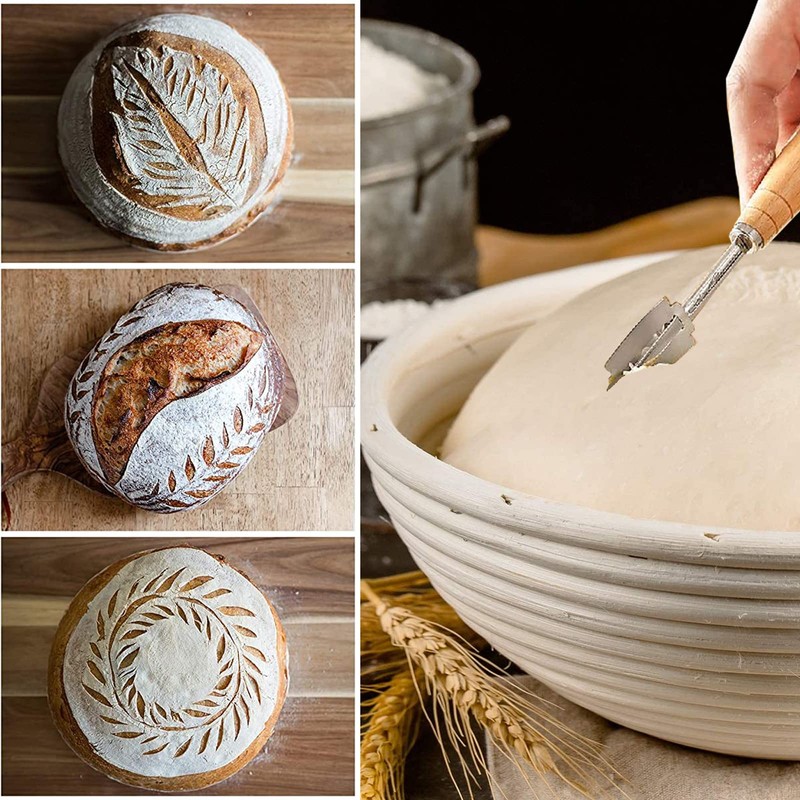- Perfect baking tool set: you will definitely love this complete proofing basket set. Contains 2 bread baskets (1 x 23 cm round and 1 x 21 cm oval), including whisk, dough scraper, dough knife, baker's knife. Suitable for medium or medium bread (where 700 g of dough can be stored). The depth of the proofing basket provides an excellent environment for the good release of the dough.