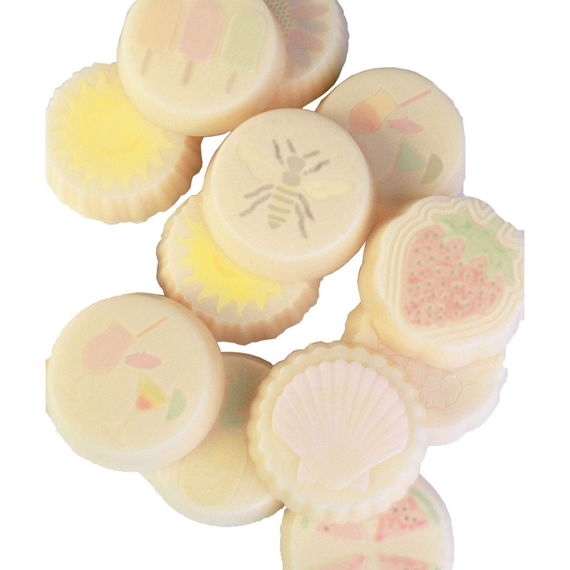 • Summer Inspired wax melt tart tray:You can make a total of 12 wax melt tarts per tray and each tray includes 12 different patterns: watermelon, ice lollies, palm tree, flower, butterfly, seashell, cocktails, strawberry, ice cream, pineapple, sun and a bee.