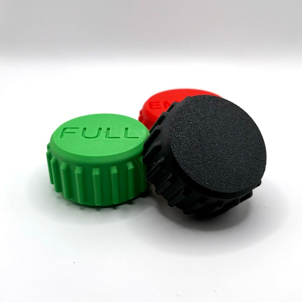 Propane Tank Cylinder Cap Covers, Threaded, Color Coded Empty Full Blank 3D Printed Caps are a great way to protect the service valve of your propane tanks and keep it free of dirt and bugs when your tank is not in use. You have a choice between 3 styles or you can get a set of all 3. By default colors are as shown but you can request any color you wish Propane Caps are made to order with a high quality 3D printer in plastic at the time of order. Due to the build process of 3D printing being built layer by layer, it is normal for slight surface imperfections to occur.