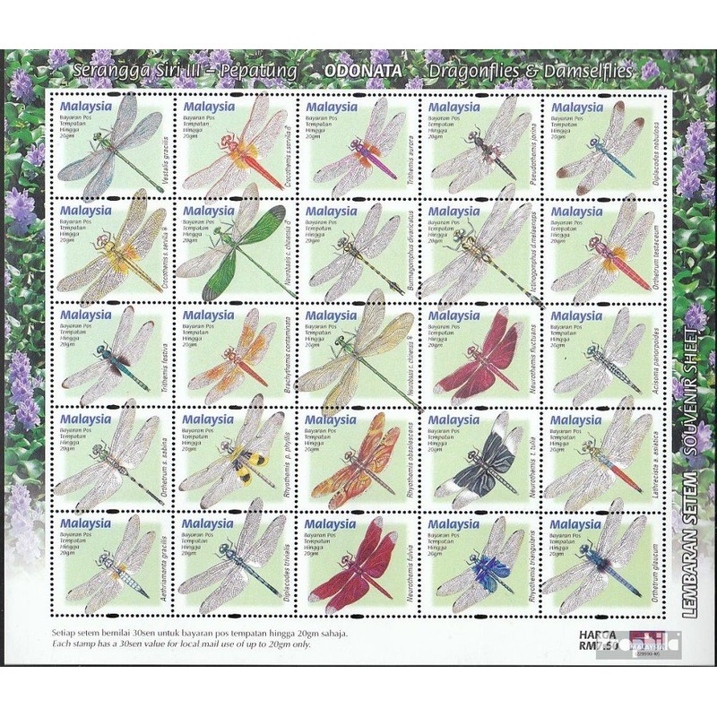 Prophila Collection Malaysia 987A-1011A Small Sheet (Complete Edition) Mint NH 2000 Dragonflies (Stamps for Collectors) Invertebrates Other (Insects, Snails, Bees etc.)