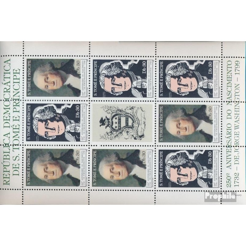 Prophila Collection Sao Tome e Principe 774A-775A Miniature Sheet (Complete Edition) Mint NH ** MNH 1982 George Washington (Stamps for Collectors) Celebrities / Film / Theatre / Radio
