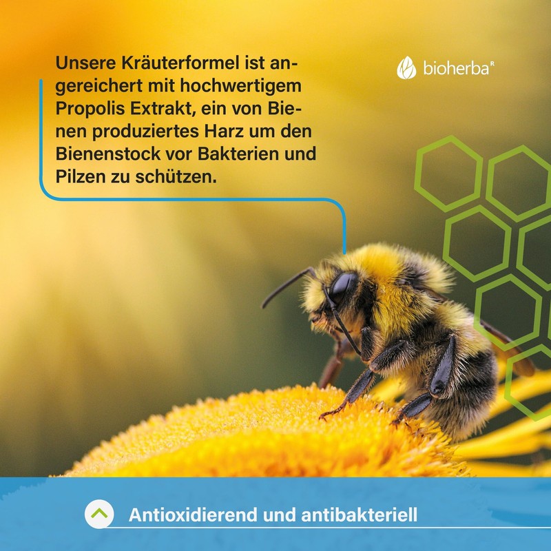 Propolis zur Unterstützung: Angereichert mit Propolis, einem natürlichen Bienenprodukt, das für seine beruhigenden und pflegenden Eigenschaften geschätzt wird.