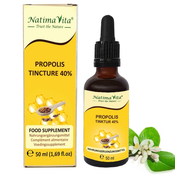 Propolis Tincture 40% - 50 ml - Pure High Dose Propolis Drops - 100% Natural - Propolis Extract - Practical Pipette - Easy Dosage - NatimaVita