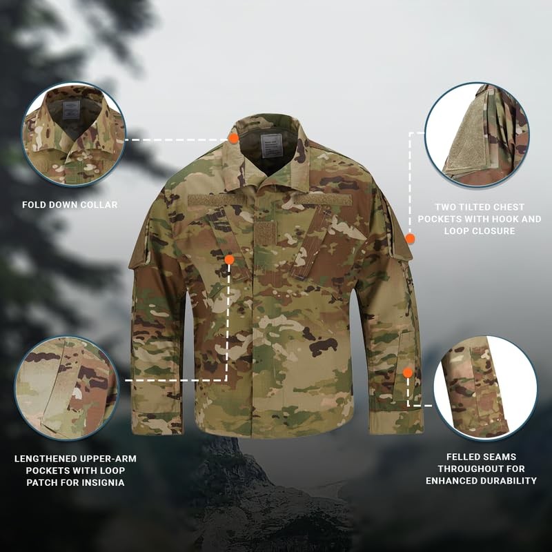 • GREAT VALUE FABRIC: Fade-, shrink- and wrinkle-resistant 65% Polyester, 35% Cotton Ripstop fabric dyed in authentic OCP pattern for a great value with wrinkle-free performance, not nIR compliant