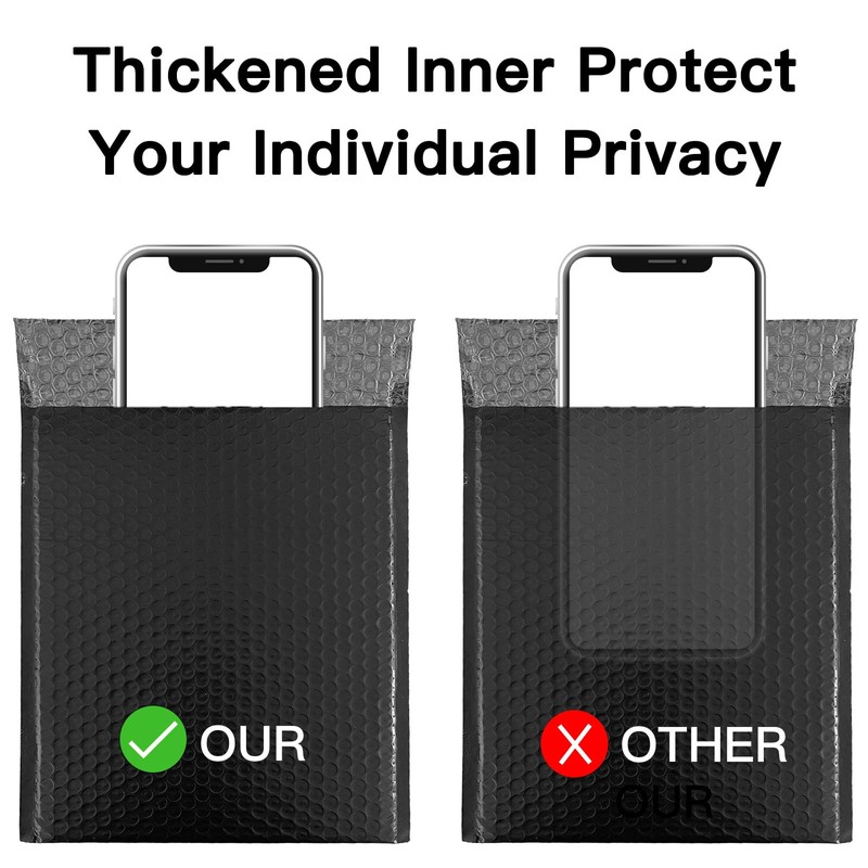 • 【Non See Through】The bubble mailer is made of 120g black polyethylene, more thick than others. Even if there is strong light, the items in the bag cannot be seen.