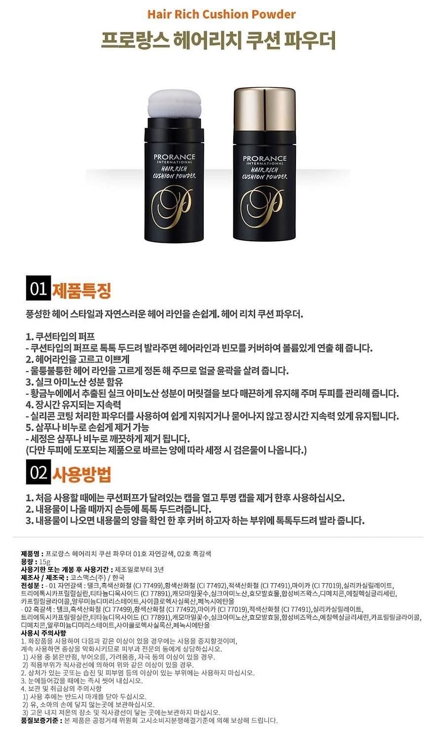 프로랑스 흑채 헤어 쿠션 파우더 자연갈색 15g