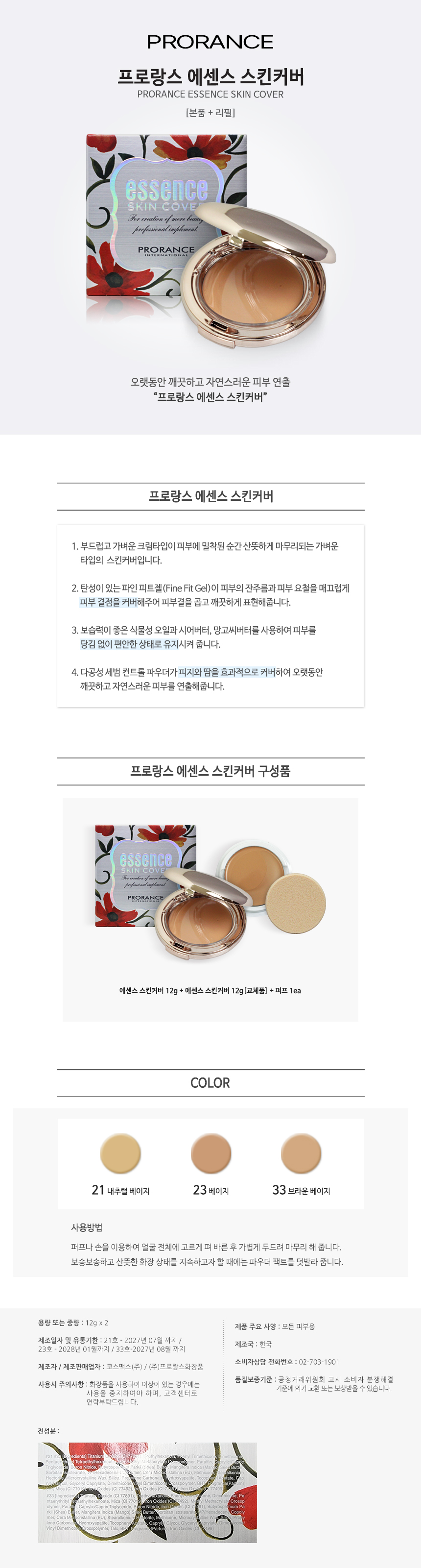 프로랑스 에센스 스킨커버 (본품+리필)