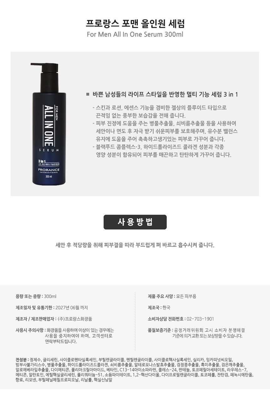 Prorance For Men All-in-One Serum 300ml / 프로랑스 포맨 올인원 세럼 300ml