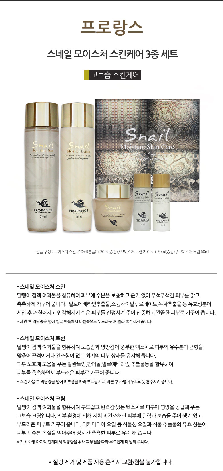 Prorance Snail Moisture Skincare 3-piece set / 프로랑스 스네일 모이스처 스킨케어 3종