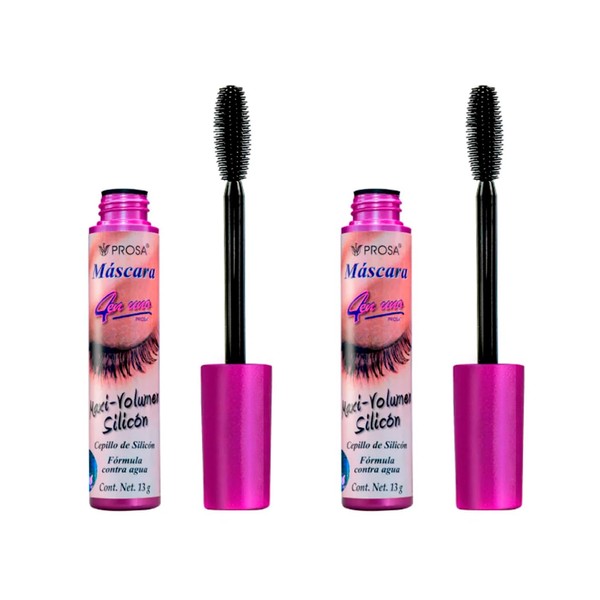 PROS_A Máscara de Pestañas Profesiona| Fórmula Resistente al Agua, Rimel Profesional larga duración | kit de 2 Piezas | Cepillo efecto alargador y da volumen 13g (Maxi Volumen Silicón)