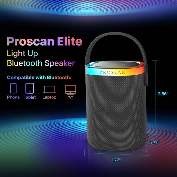 Proscan Elite Light Up Bluetooth Speaker - Small Portable Bluetooth Speaker with Lights | Portable Wireless Speakers | Outdoor Bluetooth Speaker